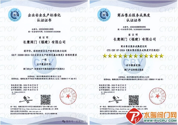 长鹰阀门再获“安全生产标准化一级”与“十二星售后服务认证”双认证